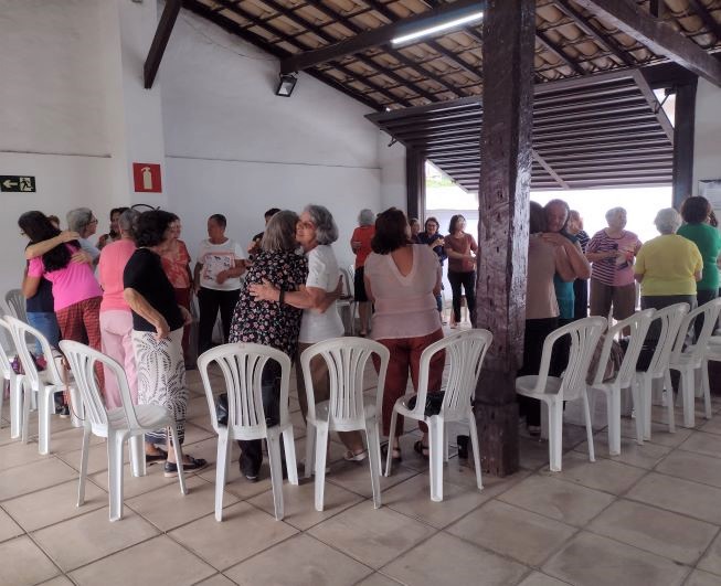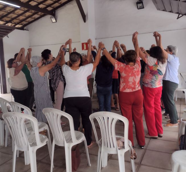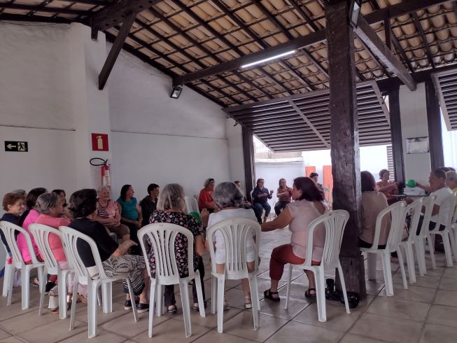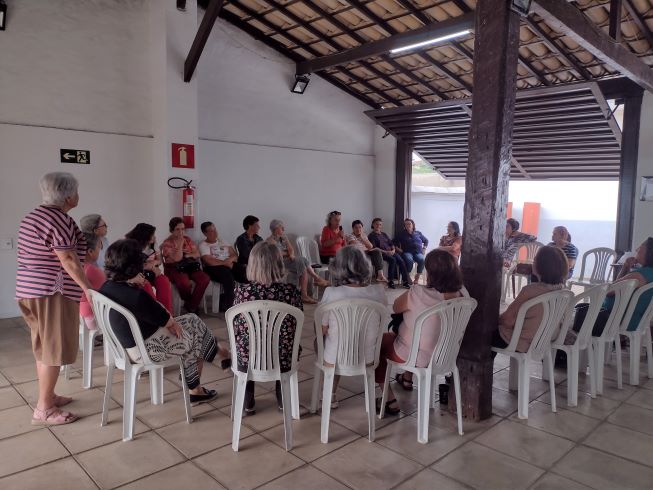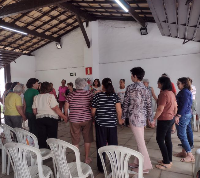 Projeto Vivendo a Maturidade. Oração e boas vindas. D. Marta distribuiu papel e caneta, e todas escreveram um desejo a ser realizado, e colocaram dentro de uma caixa de sapato decorada. Contou a história: "A caixa de Pandora". “A história da caixa de Pandora, da mitologia grega, narra como a primeira mulher, Pandora, recebeu de Zeus um jarro (ou caixa) com a instrução de não o abrir. Incapaz de resistir à curiosidade, ela a abriu, liberando todos os males da humanidade, como doenças, fome, dor e ódio, que se espalharam pelo mundo. Quando ela fechou a caixa, apenas a esperança permaneceu dentro”. Em seguida falaram sobre momentos felizes, que vivenciaram. Voltar ao passado, faz bem, o passado é bom e é sempre bom relembrar. D. Marta contou “causos” e todas se divertiram muito. Depois cada participante tirou um papel da caixa com os desejos, e foram lendo os pedidos, e algumas quiseram se identificar e comentar sobre o desejo. Dinâmica do balão: dois balões verdes e um branco, iam passando de mão em mão, só que os balões verdes, não podiam se encontrar. No final foi servido um delicioso café oferecido pela Prefeitura Municipal, 14.10.2025.