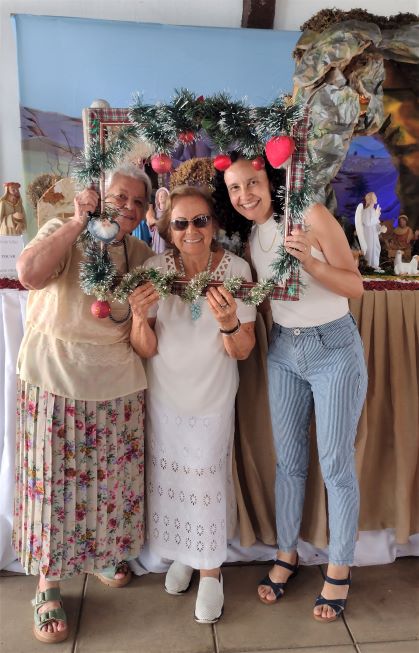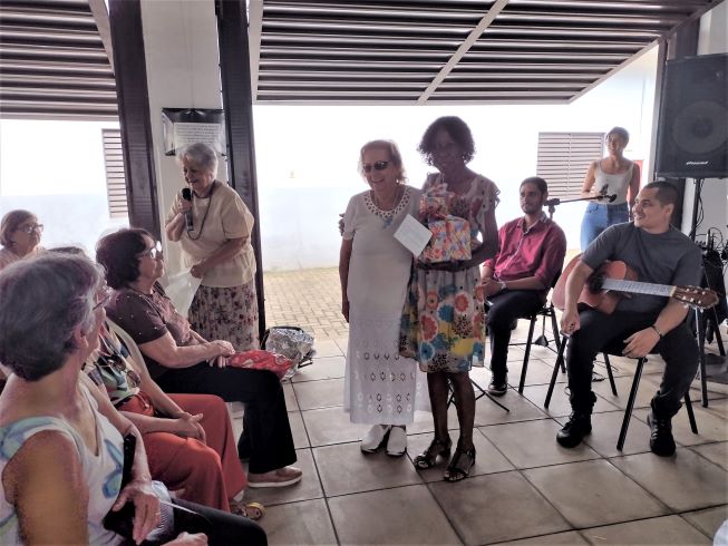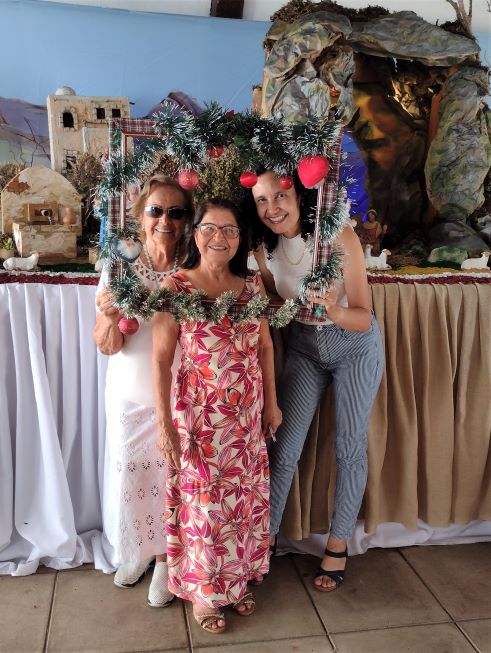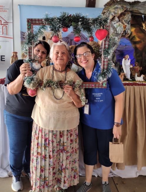 Projeto Vivendo a Maturidade. Oração e boas vindas. Confraternização e último encontro do ano. Encerrando os encontros de 2025, D. Marta lembrou a todas sobre aqueles que se foram como a colega Fátima Xavier. Cantaram várias músicas para descontrair. D. Marta leu uma bonita oração sobre Natal. Elas cantaram “Noite Feliz”, diante do Presépio, e agradeceram e fizeram orações. Cada uma trouxe um presente para o sorteio. Os presentes foram numerados aleatoriamente e colocados numa mesa. E elas receberam números distribuídos também aleatoriamente. Depois elas pegaram seus presentes correspondentes ao número recebido. Estiveram presentes a Secretária de Cultura Isabel Faria, sua assessora Maria Amália e Alaércio Antônio Delfino (gerente doMuseu). O café foi fornecido pela Prefeitura. Um café especial com salgadinhos, refrigerante, café e um lindo e delicioso bolo de festa decorado.
